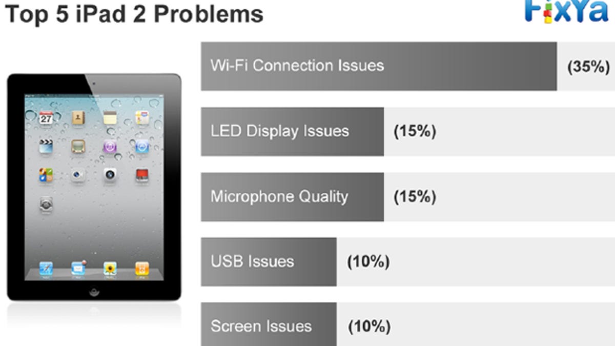 Looking at Apple's iPad, Wi-Fi connection issues came in first, cited by 35 percent of FixYa site users included in the study.