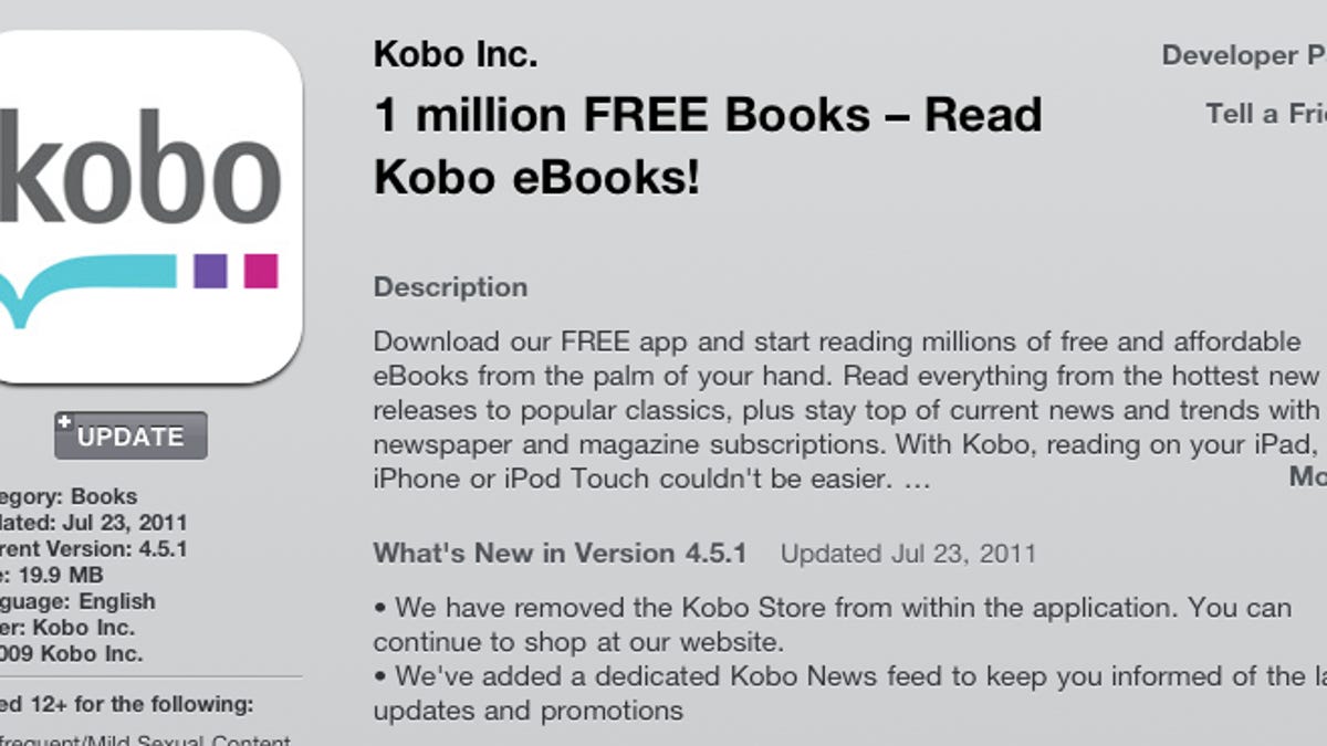 Leibu added that about 25 percent of Kobo's e-book sales come through iOS apps and that he expects that removing the buy links in those apps will hurt business a bit in the short term but it won't have a huge impact.