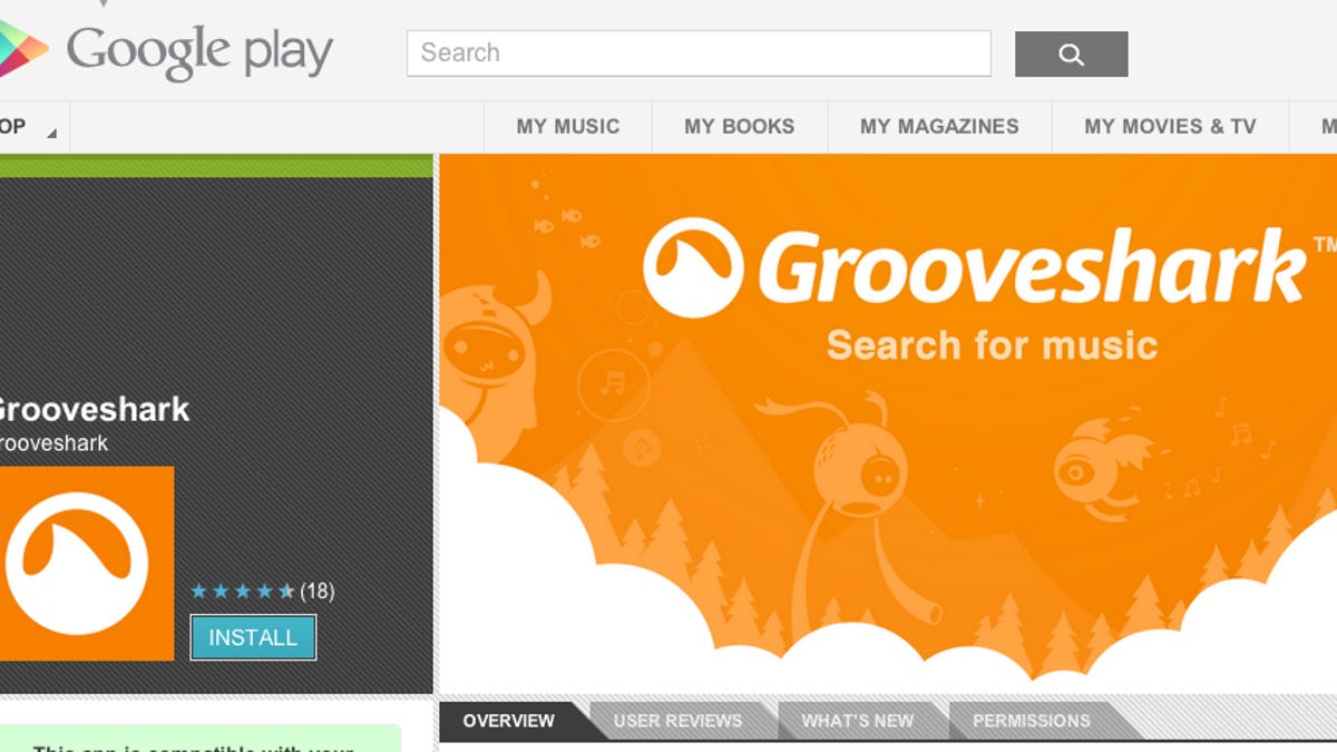 Google unceremoniously pulled Grooveshark from the store more than a year ago. The online service lets users upload songs and then share them with other users, which upset some in the music industry.
