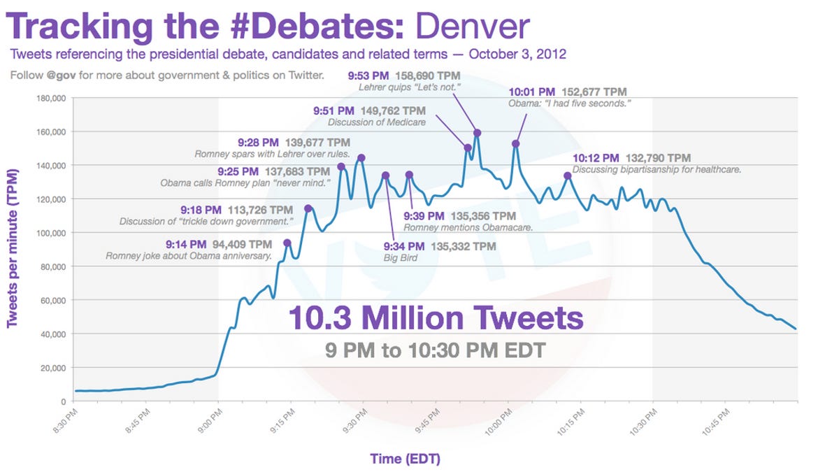 In a blog post issued early this morning, Twitter recounted the issues -- and quips -- that got users tweeting the most. Those ranged from questions about fact-checking to discussions about Medicare and Obamacare to general dissatisfaction with moderator Jim Lehrer.