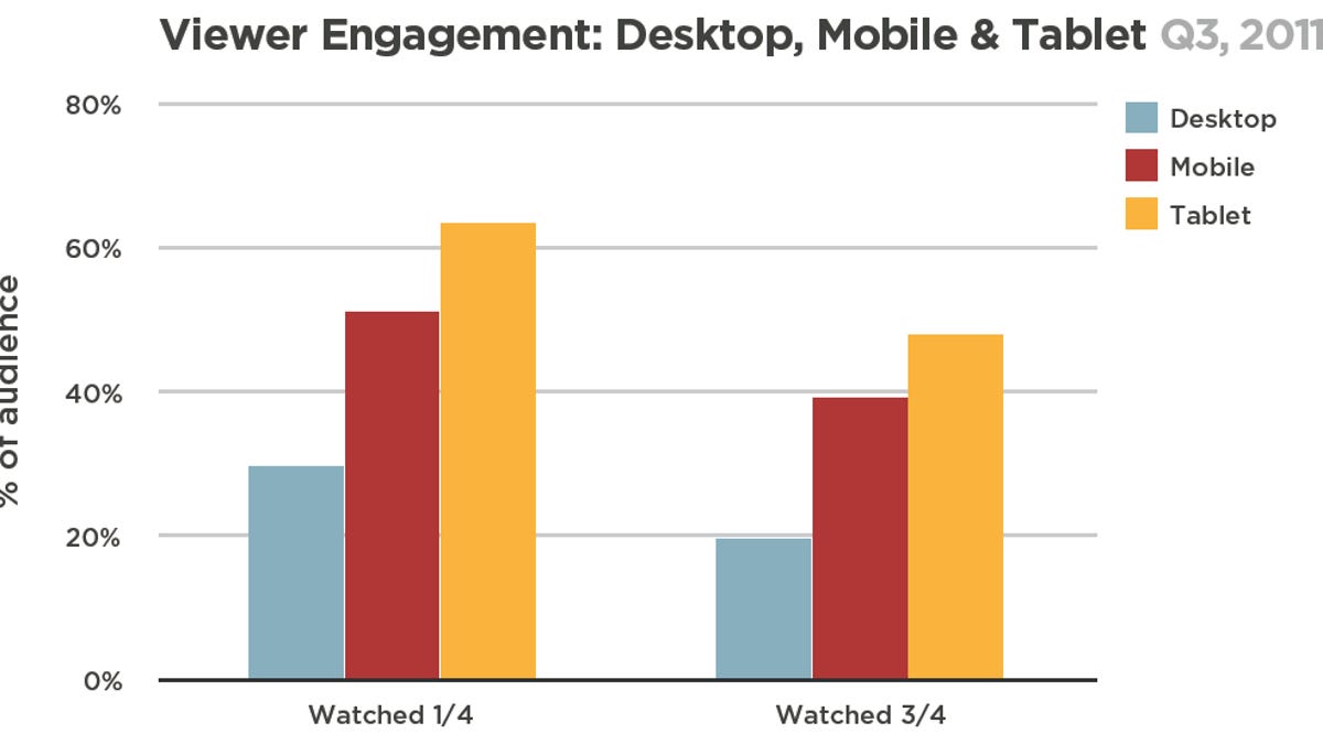 The study also found that viewer engagement was "generally higher" for long-form videos. Mobile users tended to complete three-quarters of a long-form video at a rate of 20 percent, compared with 18 percent for desktops.