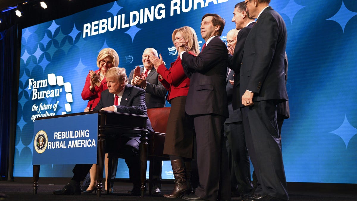 Speaking at the annual convention of the American Farm Bureau Federation in Nashville Monday, Trump unveiled and then signed a presidential order that expedites federal permitting to allow broadband expansion in rural areas and makes it easier for wireless operators to put cell towers on federal lands.