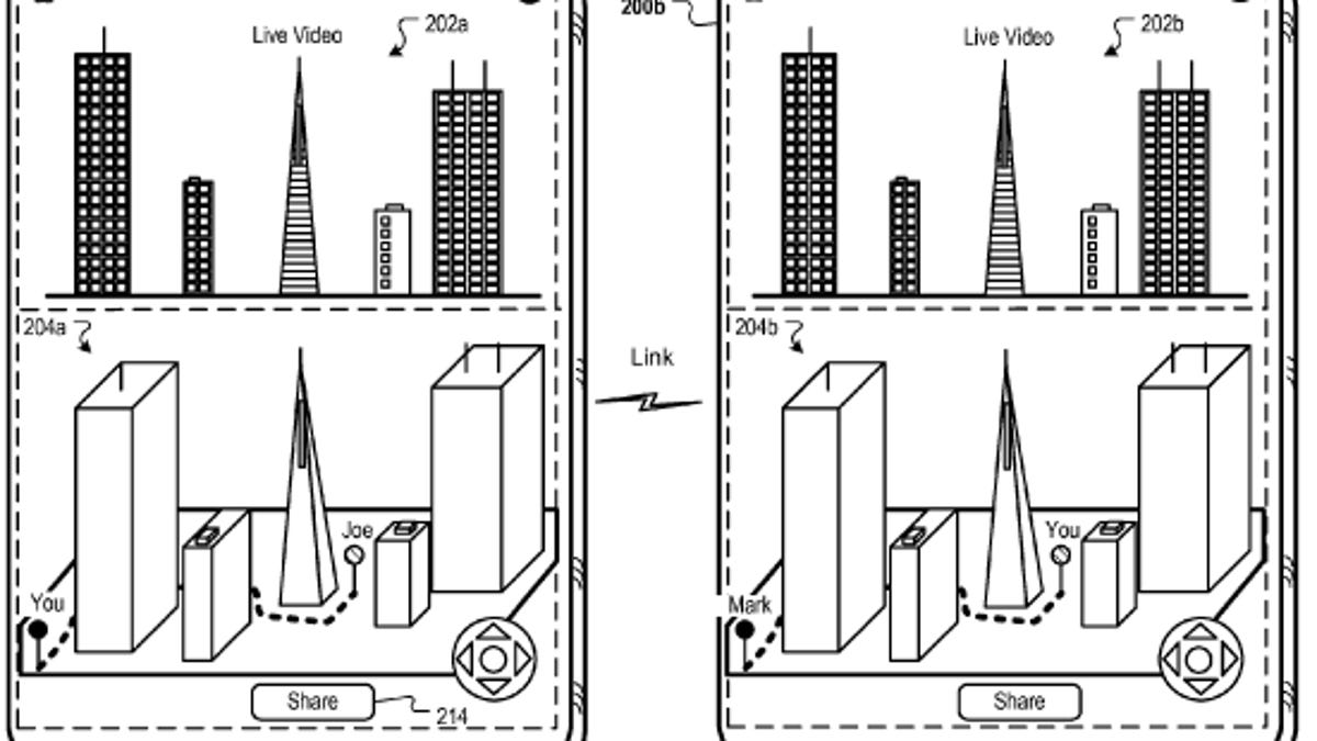 In one example cited in the patent, a user could point the camera of a portable device at a computer circuit board. The live video feed would display images of the board overlaid with annotations describing its various parts. Those annotations could include information from a local or network database, an online library, or a Web site.