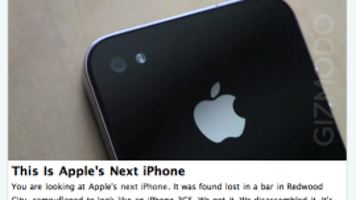 The tech blog site had revealed early Monday that it was in possession of a device it concluded to be a prototype of the unreleased and as-yet-unannounced iPhone 4G. The next-generation device was reportedly found last month on the floor of a San Francisco Bay Area bar after it was apparently left by a customer identified as an Apple employee.