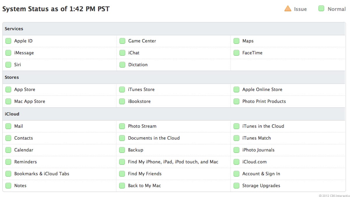 The system replaces one Apple used specifically for iCloud features, which showed checkboxes next to items that had been fixed. The newer system uses green squares and orangered triangles next to each individual service to indicate their status.