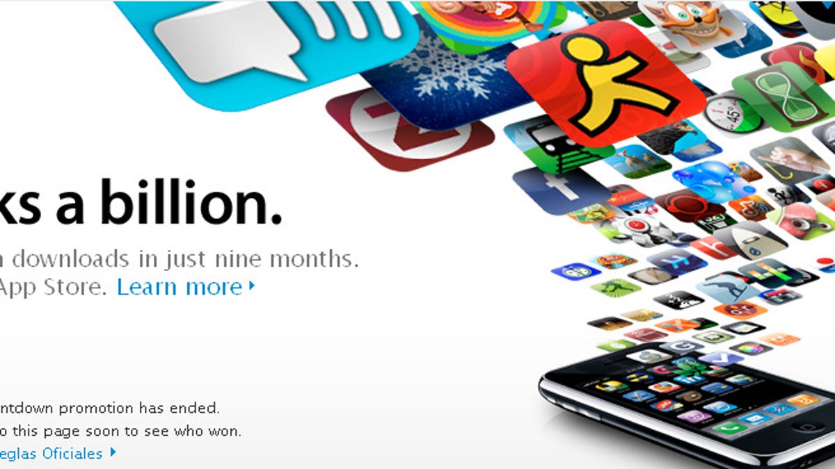 Just before 2 p.m. PDT Thursday, Apple delivered the 1 billionth App Store application, just nine months after the store launched.