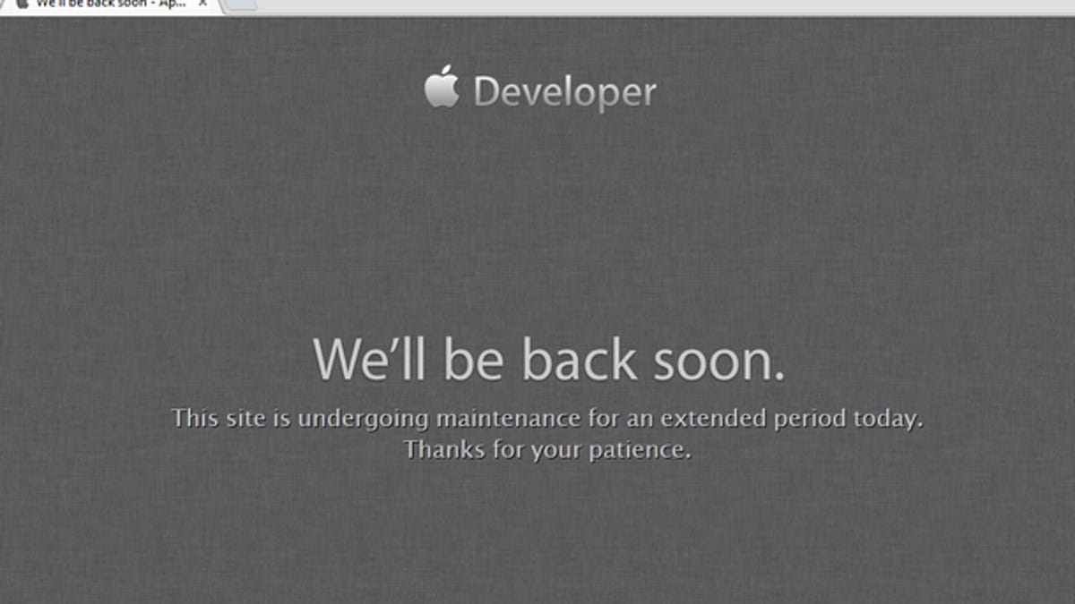 Apple's developer Web site has been down for maintenance in the past, but the latest is a doozy.