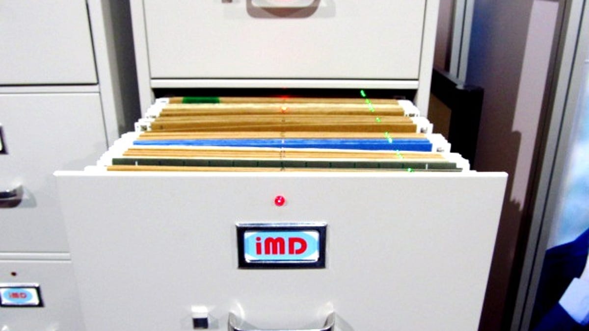 Enter the iMD Smart Filing System, a rather charming blend of analog and digital tech. Shown off at CES 2013 by the unheralded iMicroData, it lets you find an individual paper folder and its contents in old-school filing cabinets.