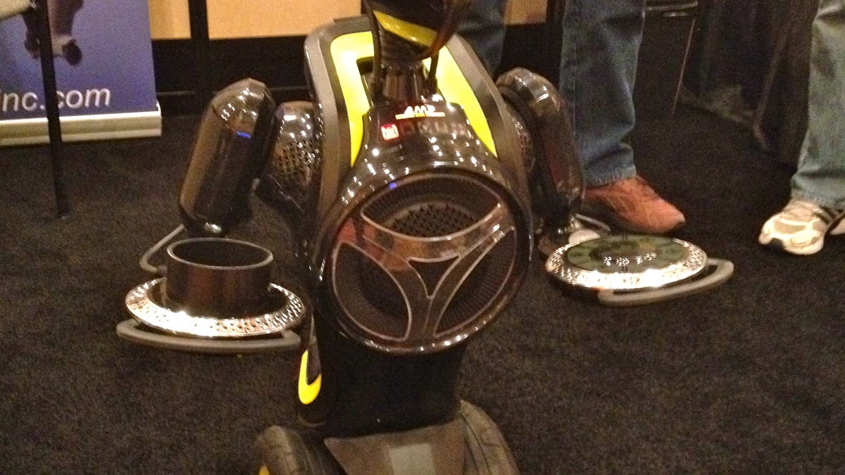 He's got the Amp robot (above), which is outfitted with speakers and plays streaming music from your phones, as it rolls around the house. That one he's hoping to get into production and sell for between $300 and $400.
