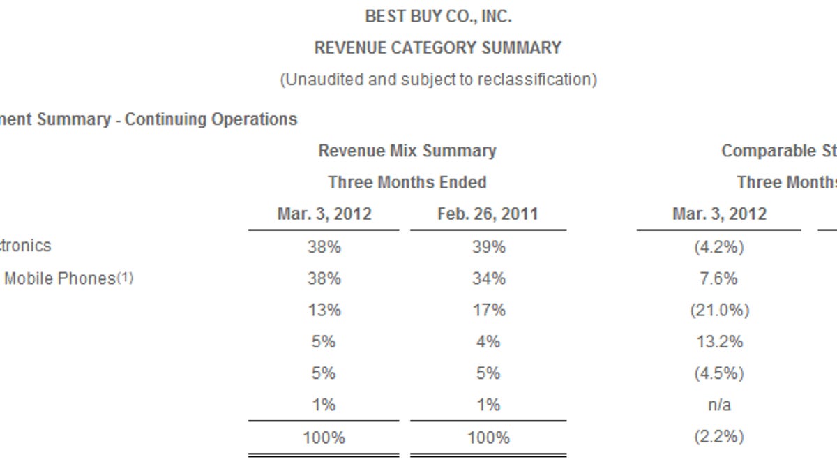 Excluding those charges, Best Buy reported a non-GAAP profit of $2.47 a share. Wall Street was expecting earnings of $2.16 a share on revenue of $17.23 billion for the quarter that ended March 3. As for the fiscal 2013 outlook, Best Buy projected earnings of $2.85 a share to $3.25 a share. Non-GAAP earnings will be $3.50 to $3.80 a share. Wall Street was looking for $3.69.