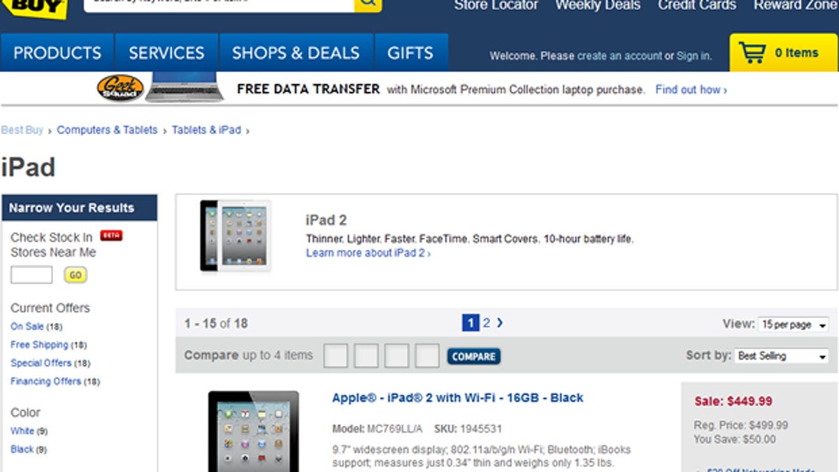 Consumers still eyeing an iPad 2 can grab one for $50 off at their local Best Buy store.