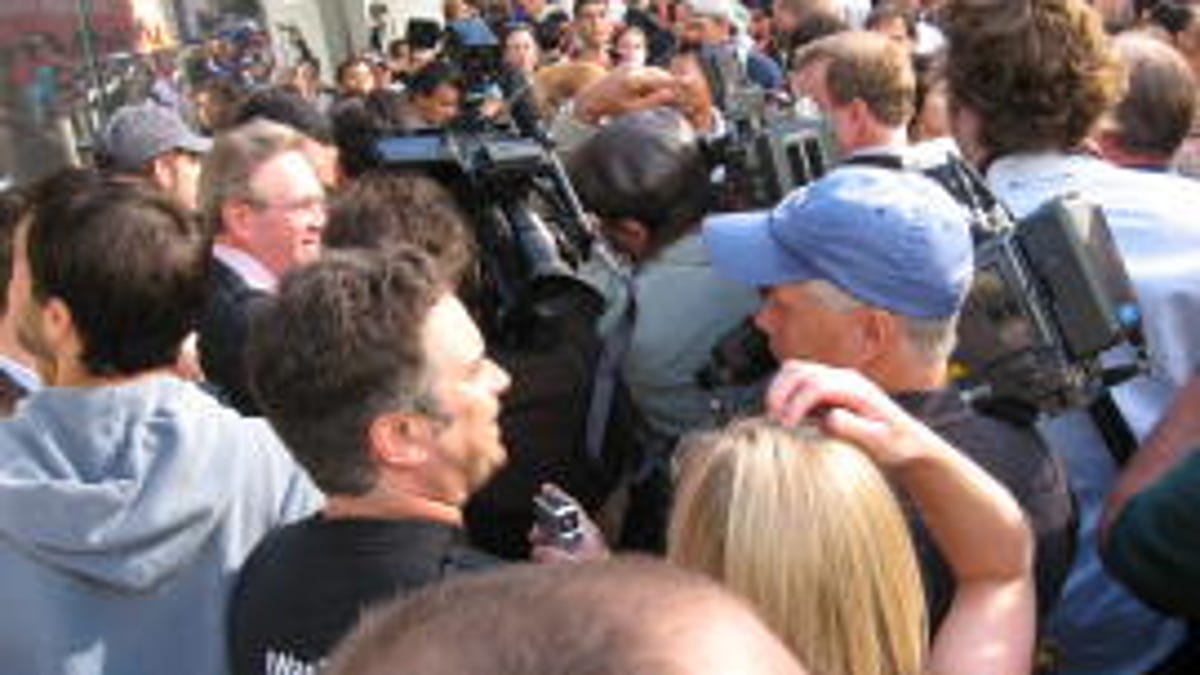 It looks like there 's going an additional twist this year, at least in New York. Over the holiday weekend, a publicity-minded group of environmental activists decided to use the iPhone launch to promote their own causes. It's an election year, too; will we see McCain and Obama activists promoting their candidate in front of a captive audience? Who knows.