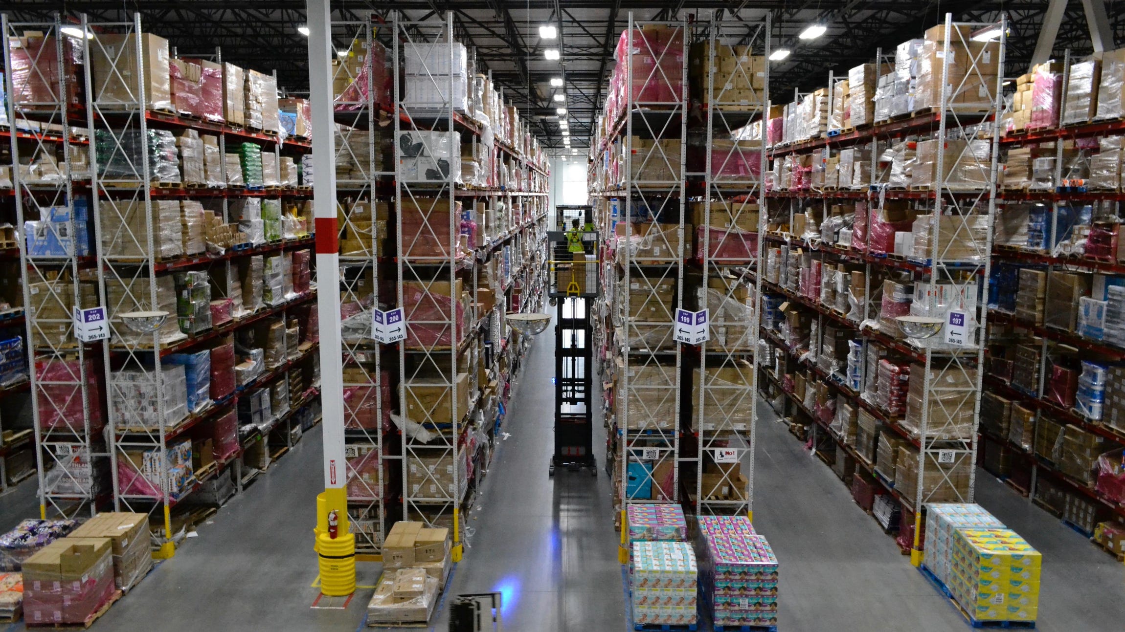 Workers say they don't have enough time to walk to the bathrooms in Amazon's massive warehouses, like this one in Massachusetts.