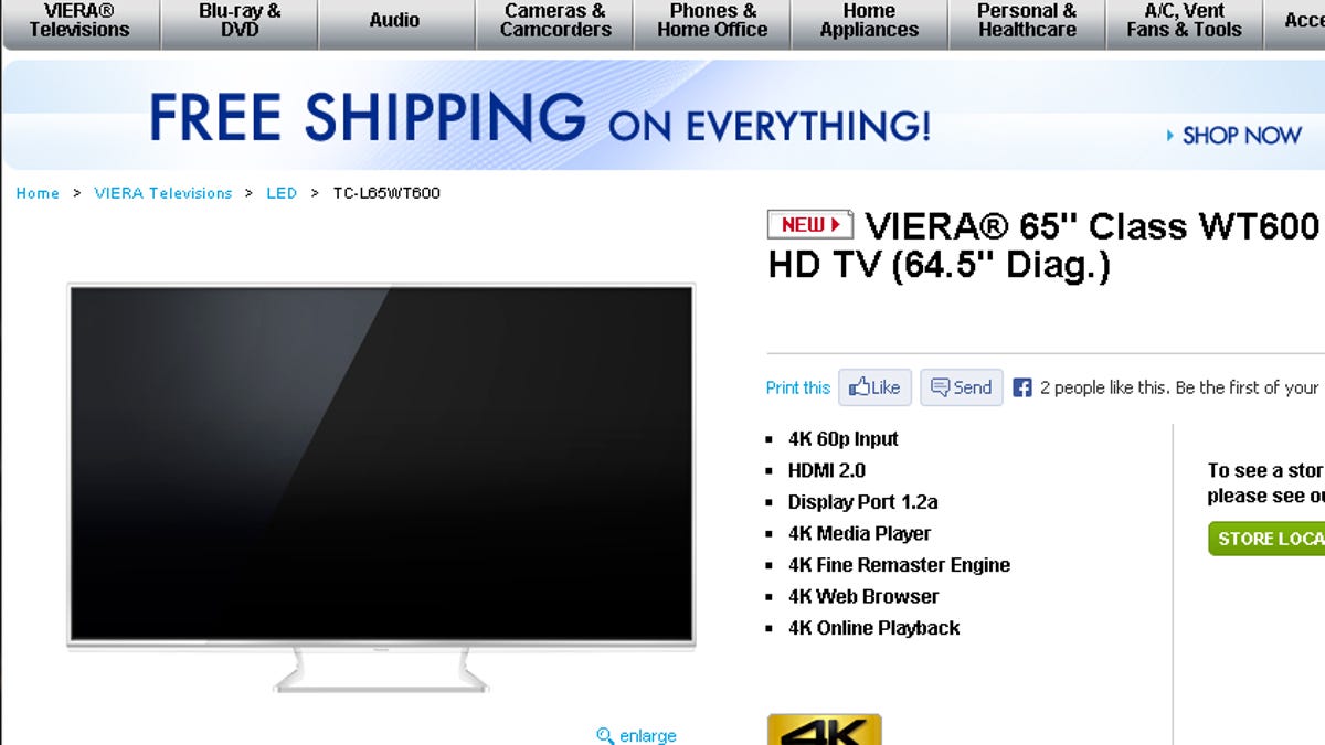 The information was spotted by a member of enthusiast Web site AVForums.com. Per the page at Google cache, since removed, the TV's model number is TC-L65WT600.