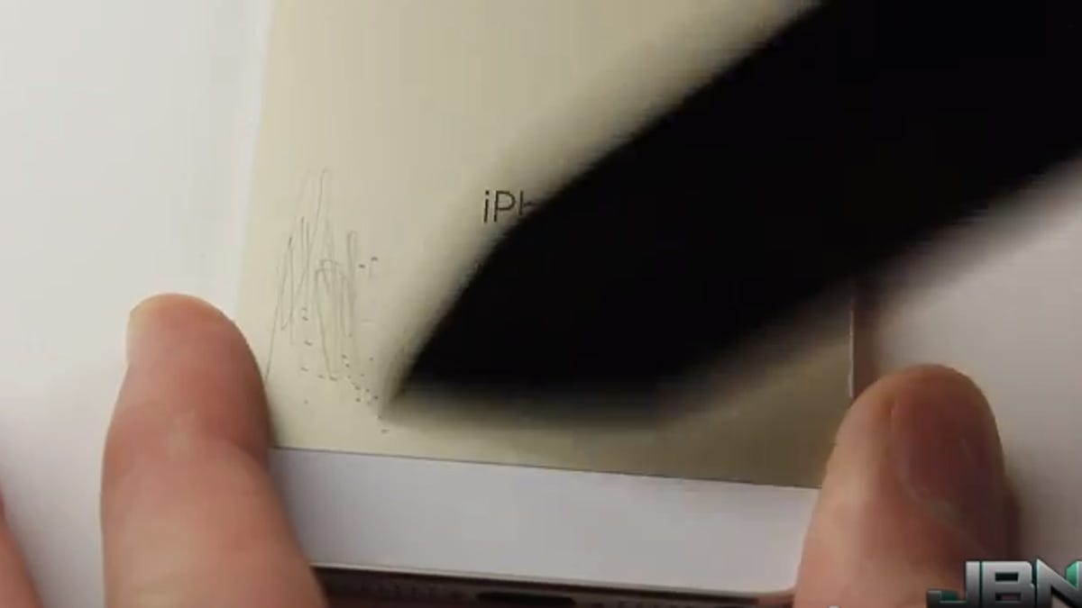 That takes the form of a knife scratch test, which scrapes up the back of the purported iPhone 5S to show how it holds up to cosmetic damage. Notably the test does not cover drops, something that could crack your screen, and possibly lead to a nonfunctional device.