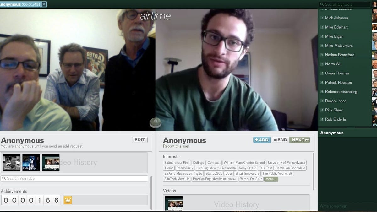 Chatroulette this isn't. Airtime is two things: First, a video-calling service that lets you connect directly to your Facebook friends. But Skype also lets you connect with friends using video, and for that matter so does Facebook itself. That's table stakes.