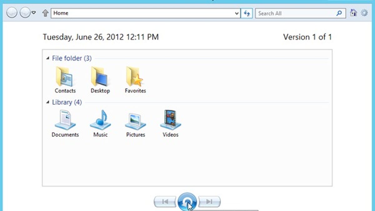 Here's how File History works in the Windows 8 Release Preview: