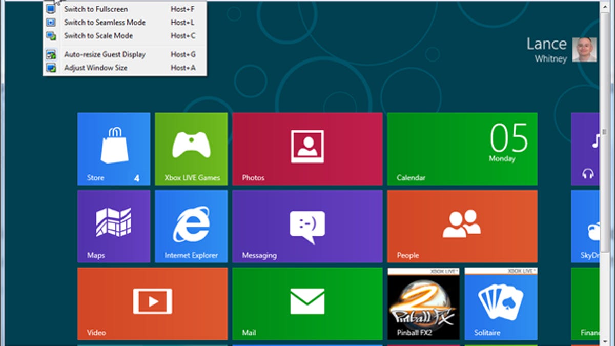 After Windows 8 is installed, you can run it just as you would on a dedicated PC. You can also resize the VM window or switch it to full screen.