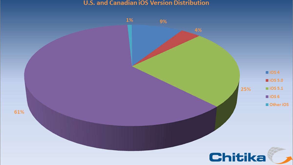 Advertising and analytics company Chitika said today that 61 percent of iOS devices are now running iOS 6, which was released for download in mid-September. This number comes from what Chitika said is "a sample of hundreds of millions of mobile ad impressions" from its advertising network over the last month.