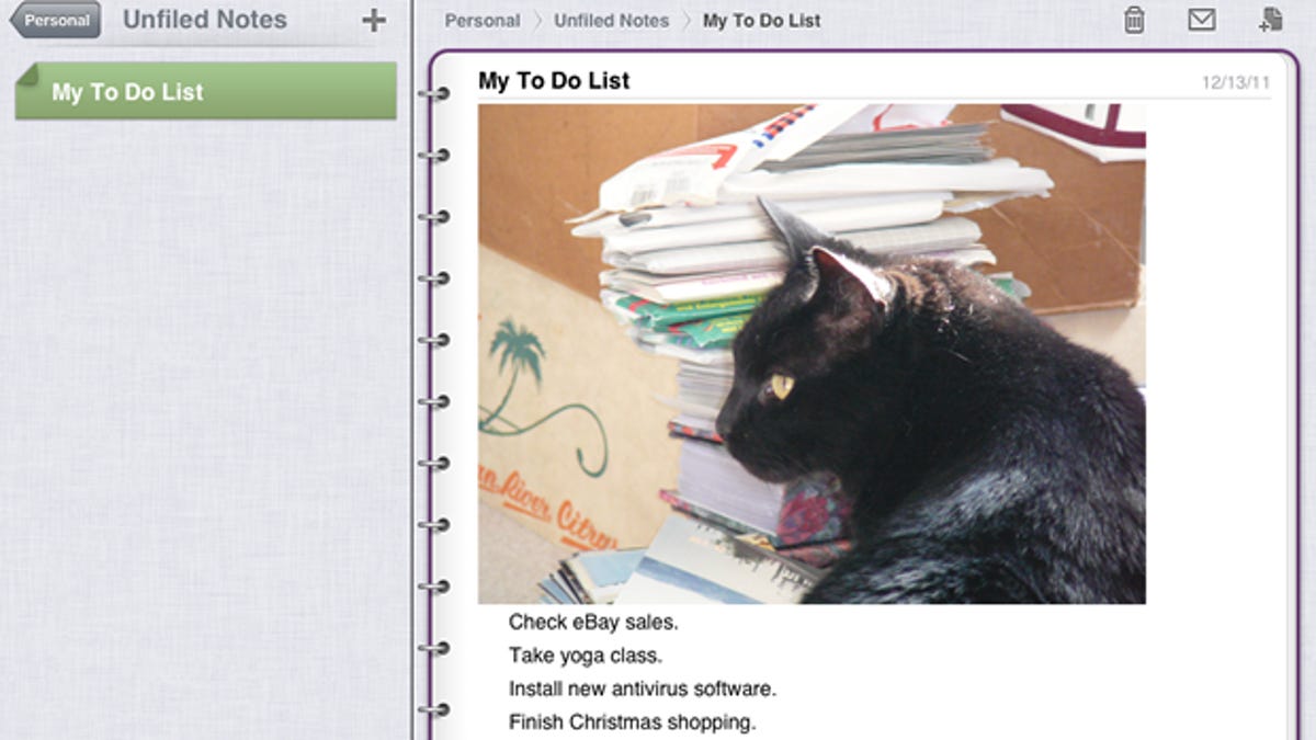 Still, OneNote for iOS can come in handy for viewing notebooks created on your desktop. OneNote's desktop version lets you save each notebook on the Web through your SkyDrive account. Your iPad or iPhone will then automatically retrieve new and updated content by syncing with SkyDrive in the background.