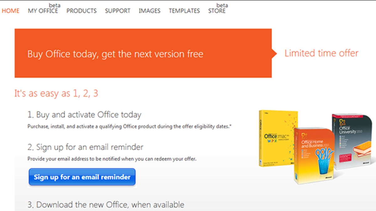 Buy Office 2010 or 2011 now, and you'll get a free copy of Office 2013 later.