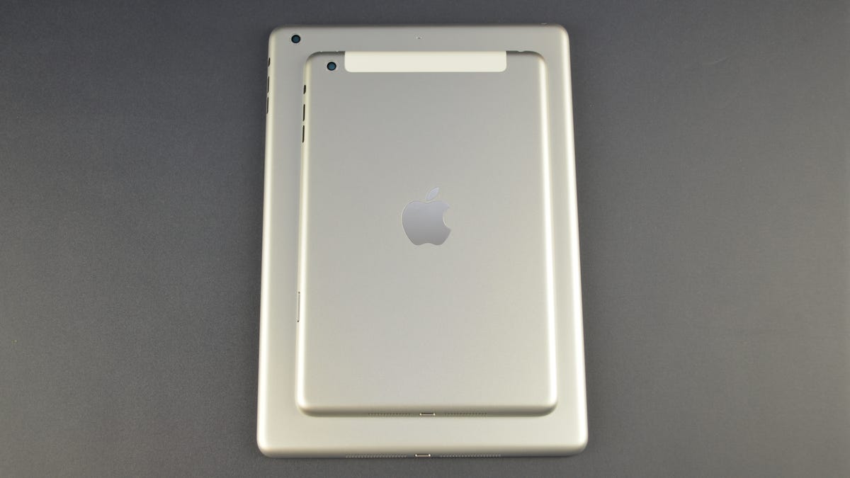 The images, which are not accompanied by any information on where they were obtained or how likely it is that they are real, show both tablets featuring much the same design, including an aluminum finish on the back and a prominent Apple logo at the center. The devices appear to come with speakers at the bottom and standard black buttons for volume controls and locking the screen.