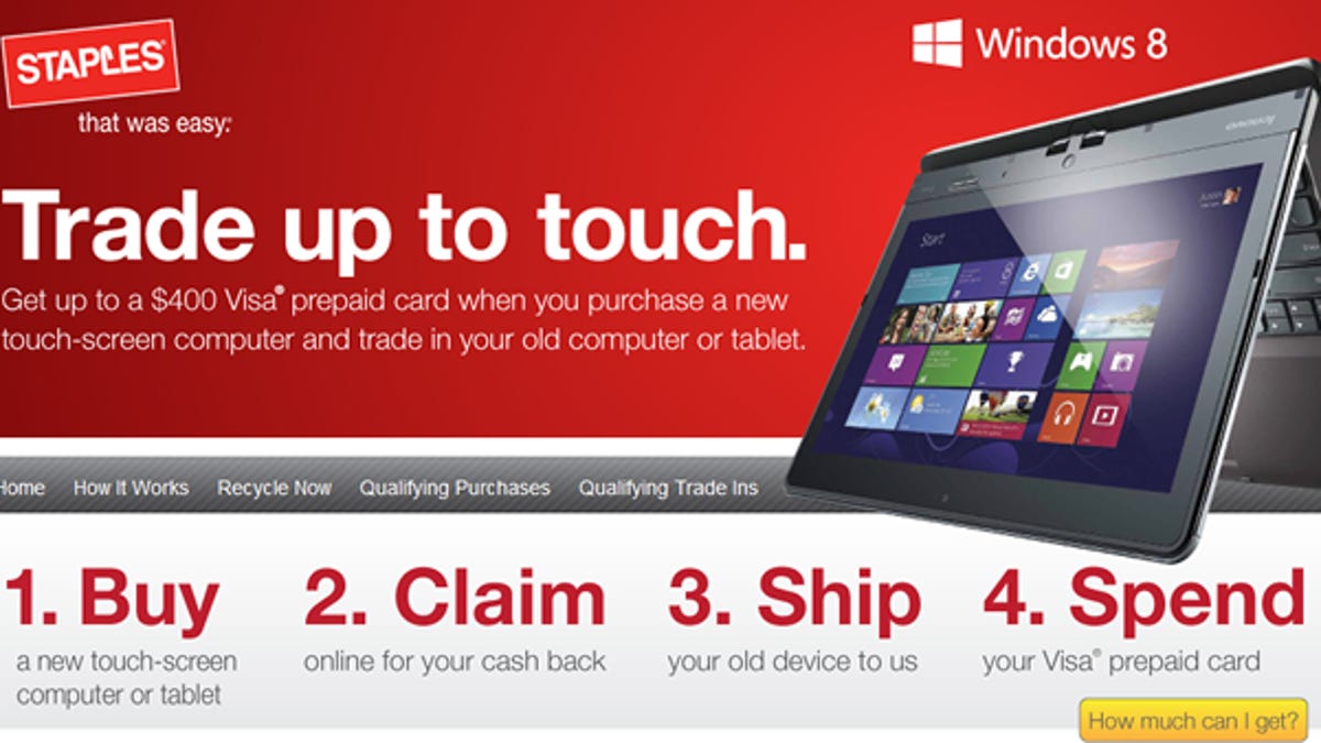 Staples in dangling a $400 trade-in deal to steer customers toward Windows 8 devices.