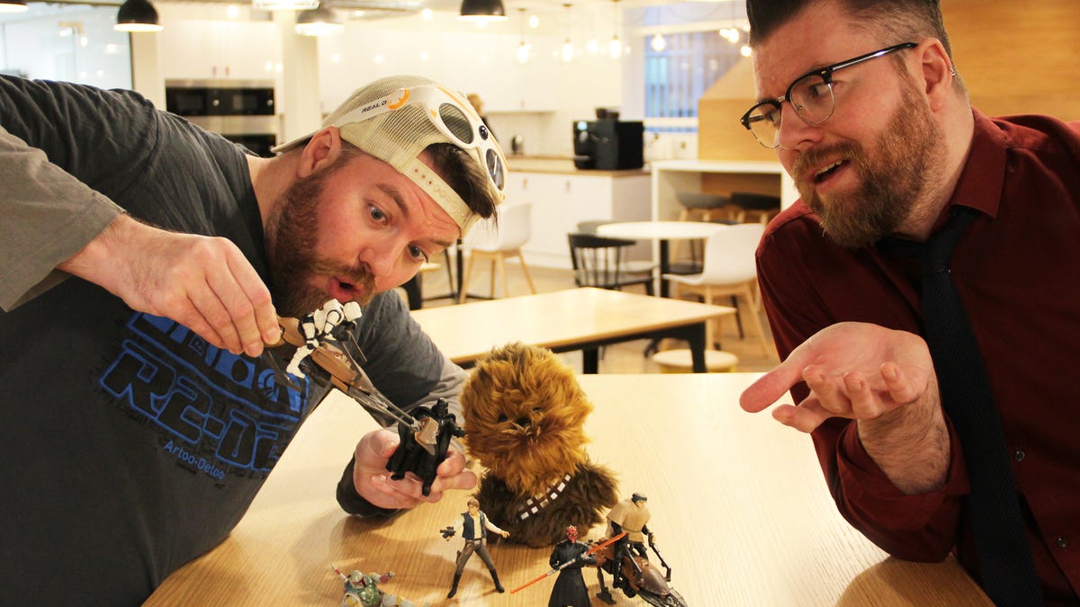 The Millennium Falcon goes upside down and the screen goes upside down! BB-8 is the cutest! New Star Wars is the best! Pew pew!